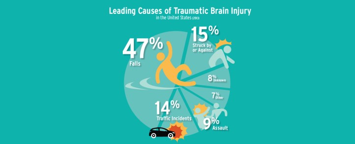Be aware… top causes of traumatic brain injury include traffic accidents, falls, and being struck by or against an object. So buckle up, watch your rugs, and wear a helmet. More here.