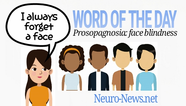 Word of the day: prosopagnosia, also called face-blindness, is a cognitive disorder in which the person is unable to recognize familiar faces. There is no cure for the condition.