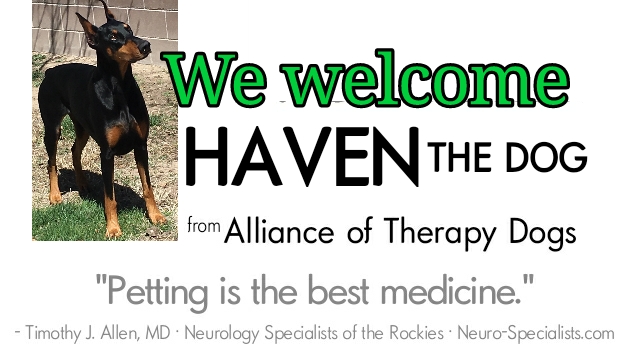 Haven’s a special soul. She’s deaf (but doesn’t know it). Haven’s here to cheer up patients at my clinic, Neurology Specialists of the Rockies, along with Cheyenne Radiology Group — located in the same building.